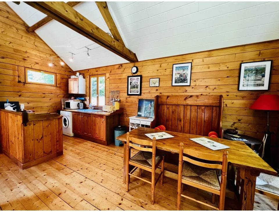 All on one level, the Wooden House offers comfortable, spacious accommodation perfect for riders seeking relaxation after a day’s adventure. Inside, you’ll find a large, open-plan living room with a fully equipped corner kitchen, a generous dining table seating six, a cozy settee, and easy chairs for winding down.